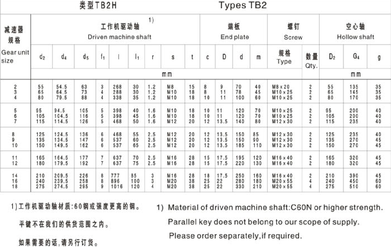 FXHB类型 TB2 Type TB2 带平键连接的空心轴 Hollow Shaft for parallel key Connections系列大功率工业齿轮箱