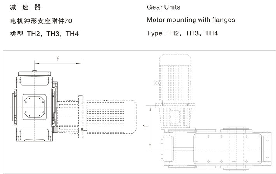 FXHB电机钟形支座附件70 Motor mounting with flanges 类型TH2 TH3 TH4 Type TH2 TH3 TH4系列大功率工业齿轮箱
