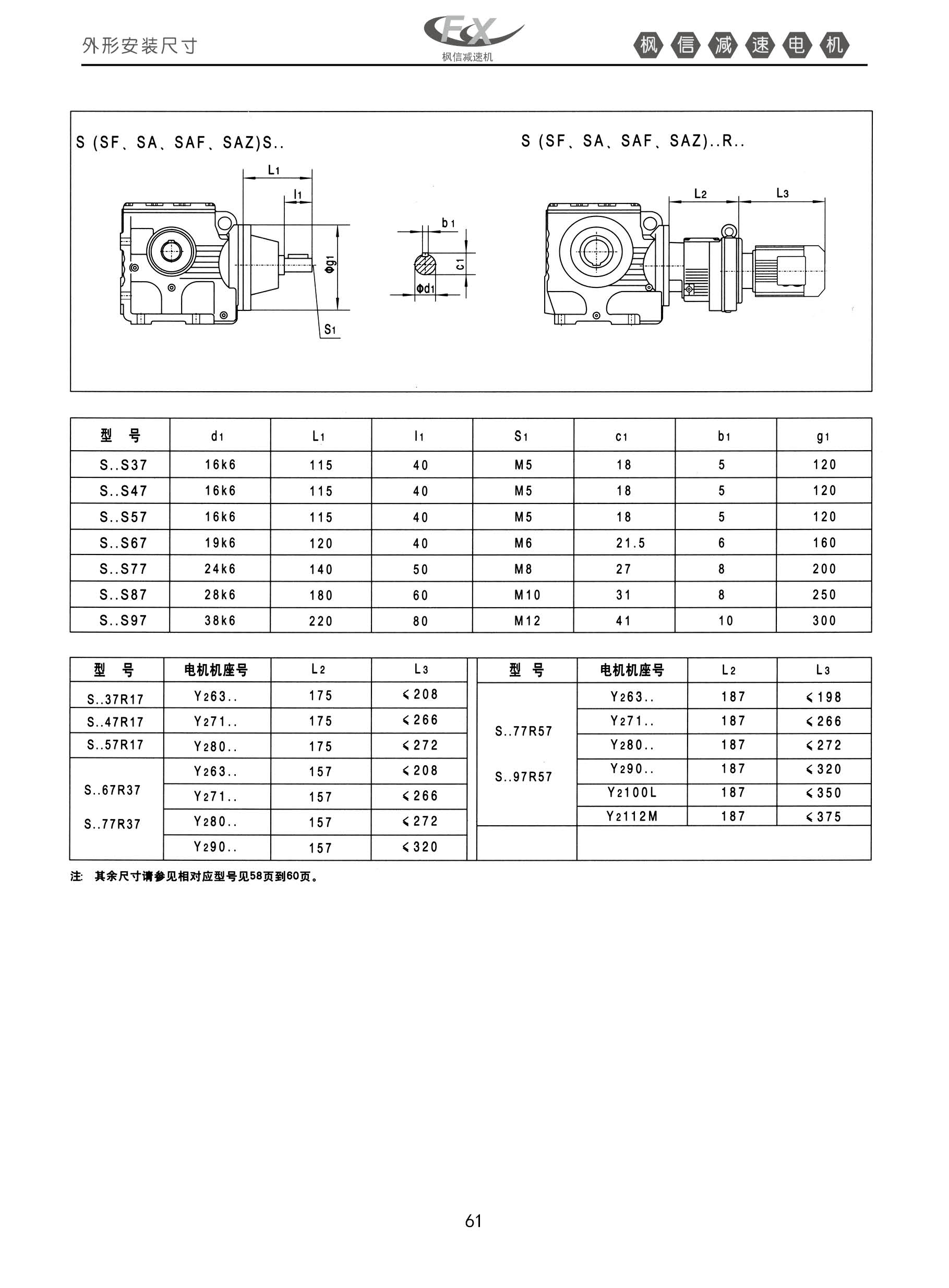 FXS系列斜齿-蜗轮蜗杆减速机。外形安装尺寸。S型