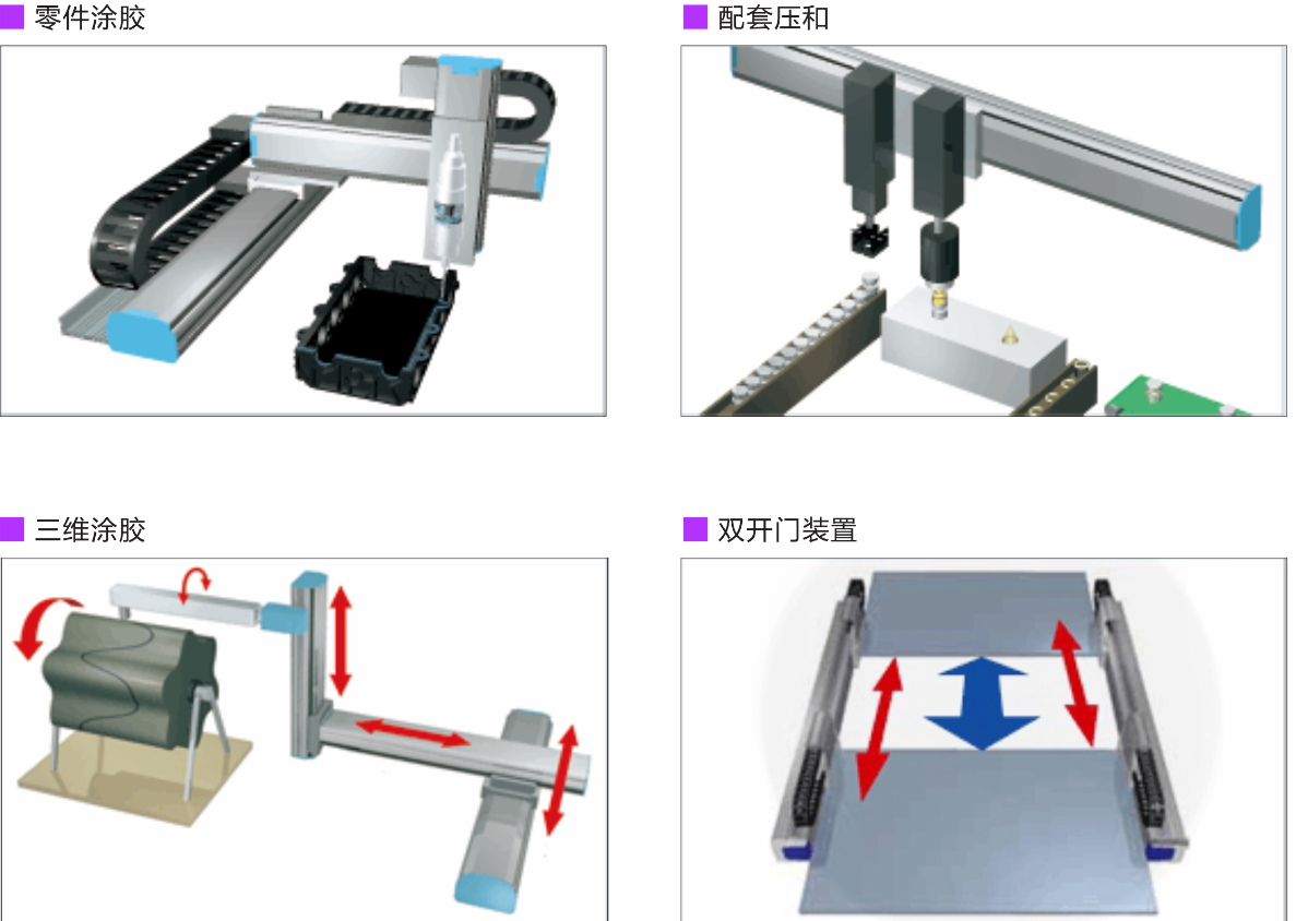 FX直线模组机械手应用实例 零件涂胶,三维涂胶,双面同时检测,配套压和,双开门装置,锁螺丝