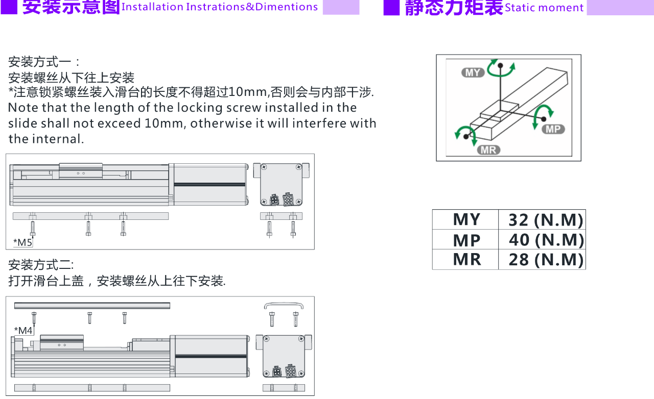 FX直线模组滚珠丝杆驱动 基本规格 安装示意图