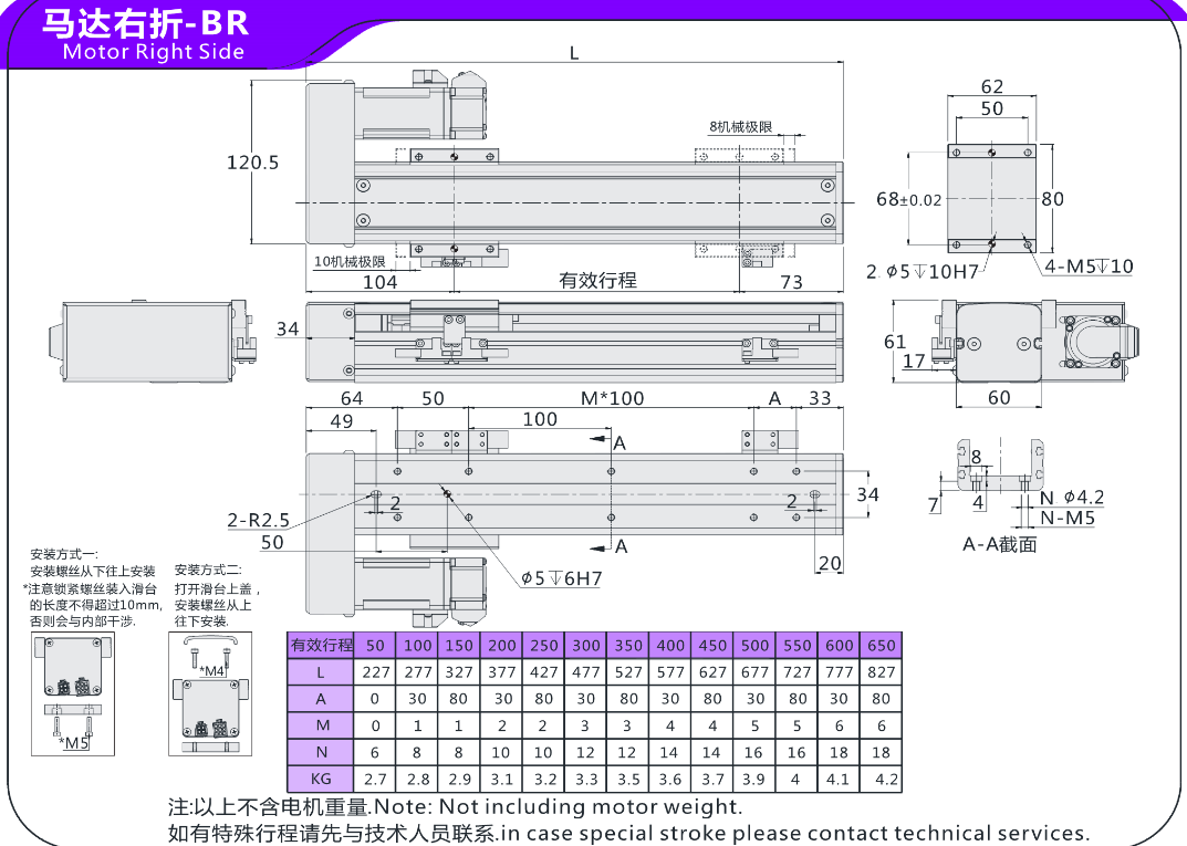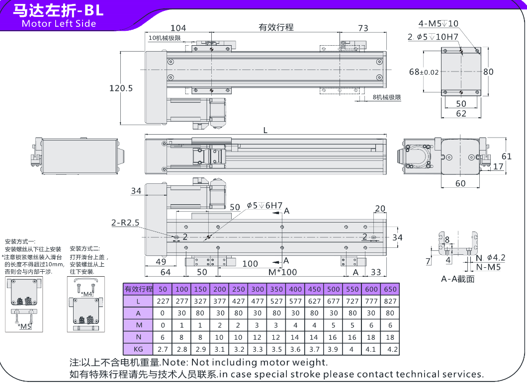 FX直线模组滚珠丝杆驱动 马达左折-BL 马达右折-BR