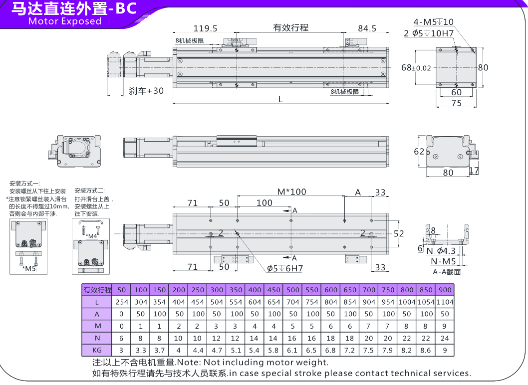 FX直线模组马达直连外置-BC,马达直连内置-M,