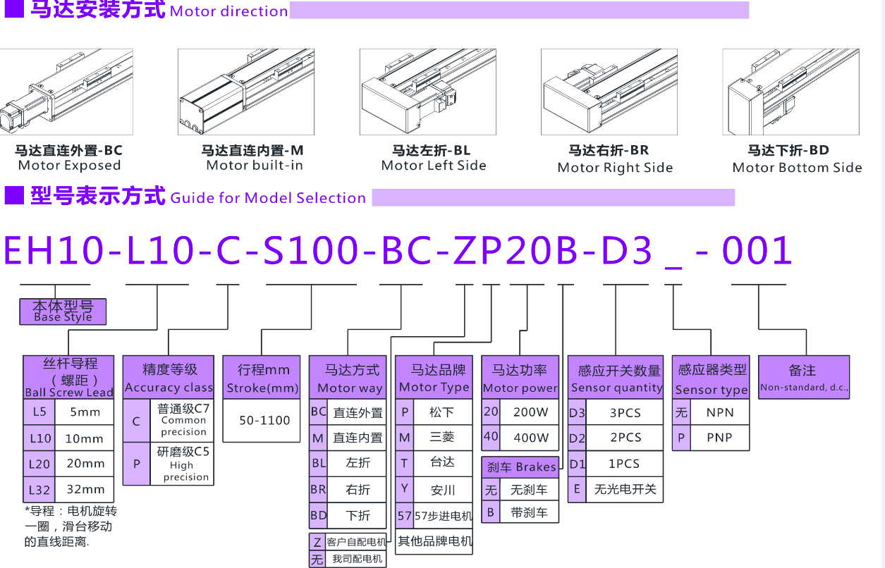 FX直线模组EH10马达安装方式,型号表示方式