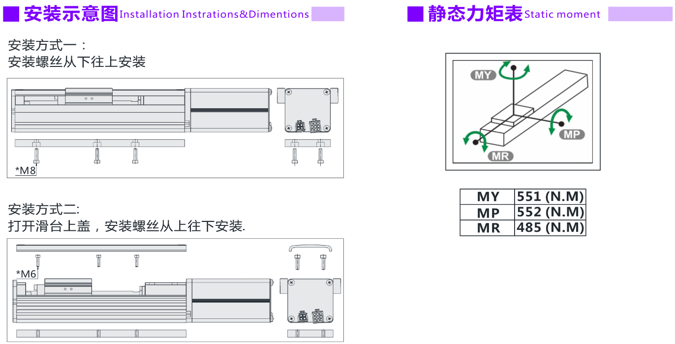 FX直线模组 EH13基本规格,安装示意图,传感器接线图,速度与行程,静态力矩表