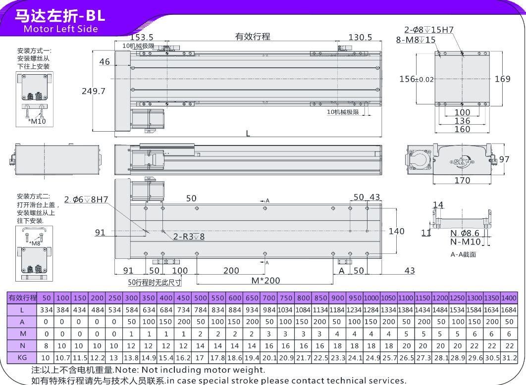 FX直线模组EH17马达左折-BL 马达右折-BR