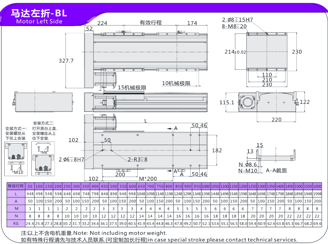 FX直线模组EH22马达左折-BL 马达右折-BR