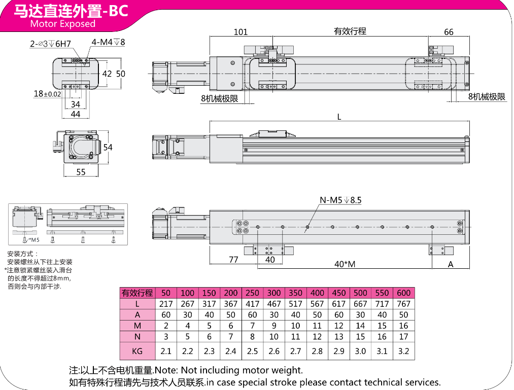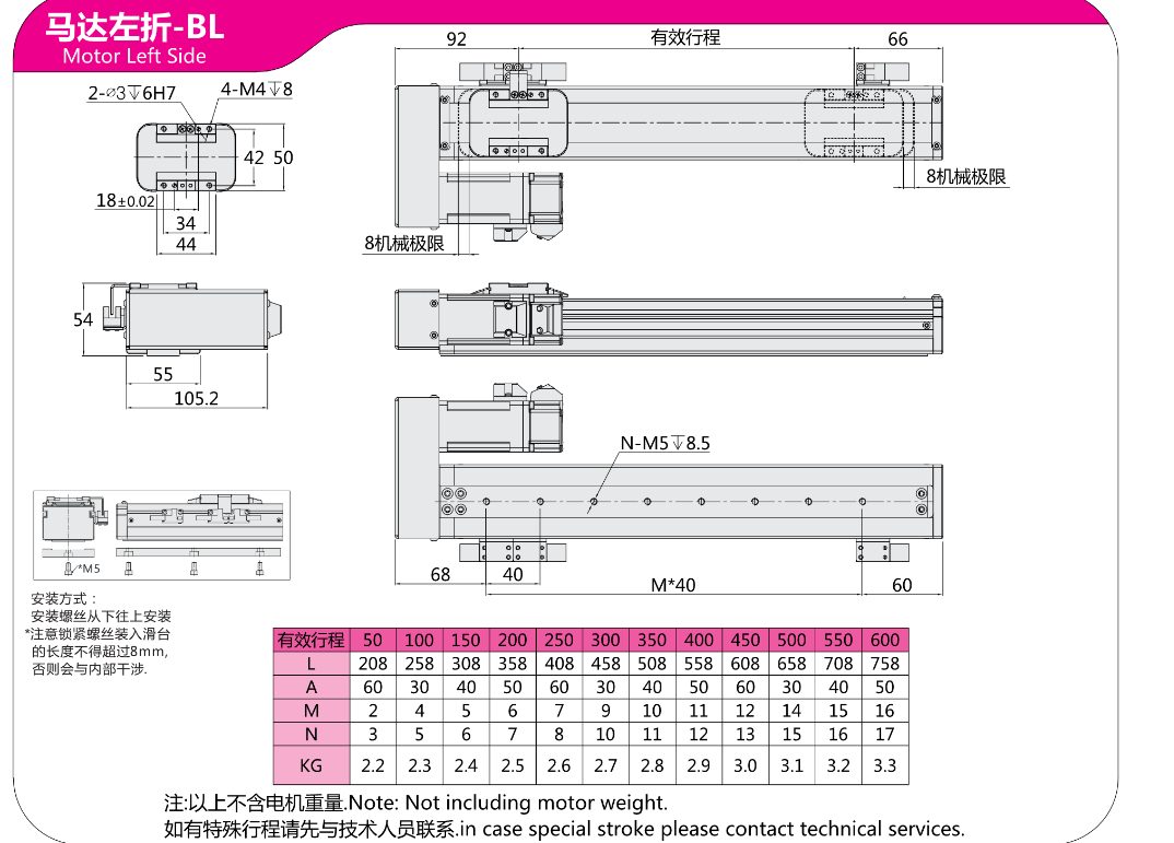 FX直线模组 马达直连外置-BC 马达左折-BL