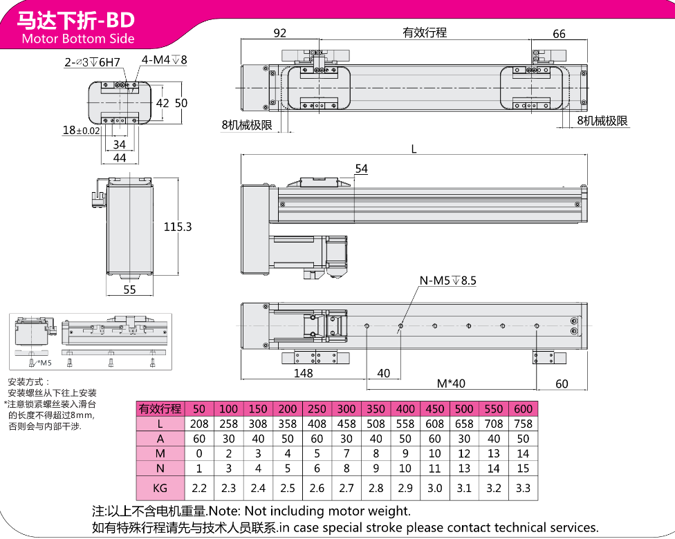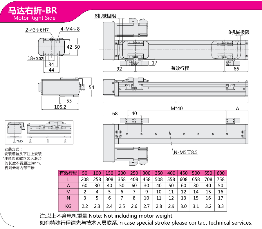 FX直线模组EC5马达右折-BR 马达下折-BD