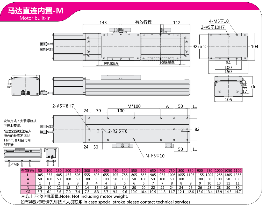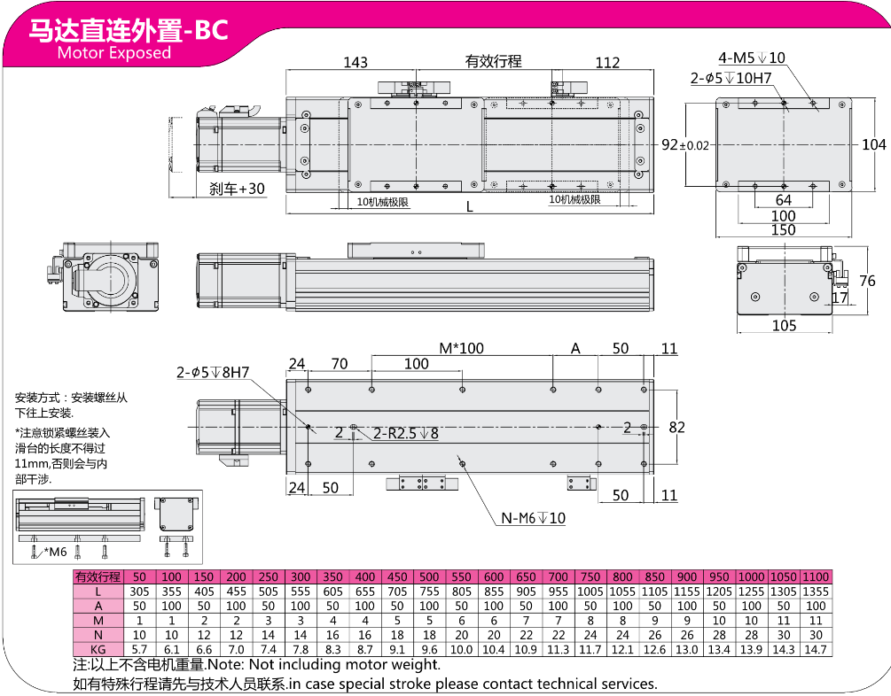 FX直线模组EC10马达直连外置-BC 马达直连内置-M
