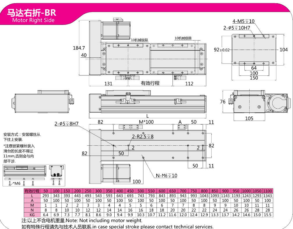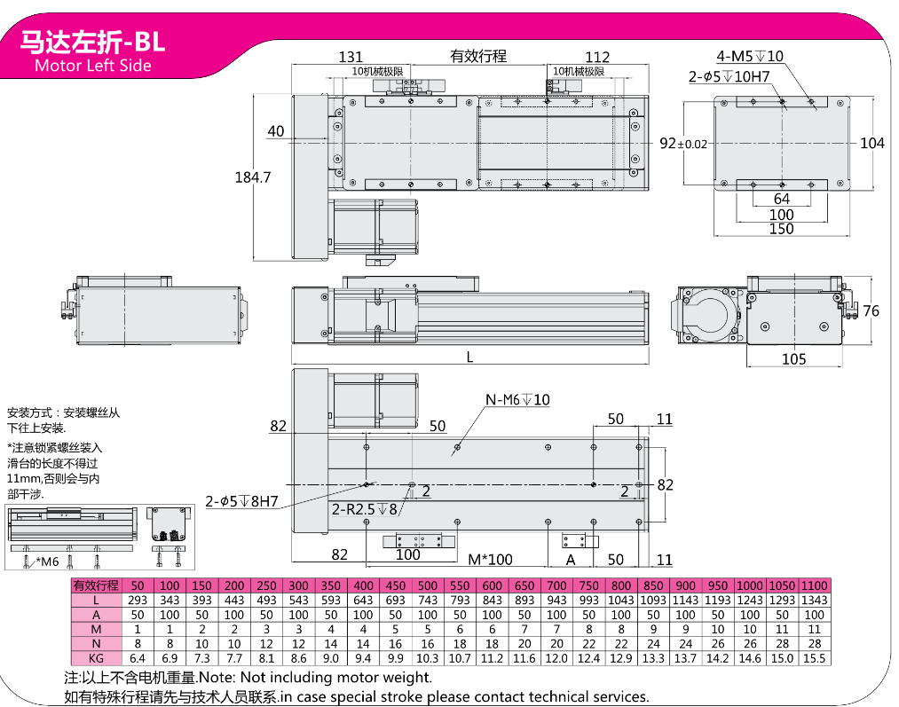 FX直线模组EC10马达左折-BL 马达右折 -BR
