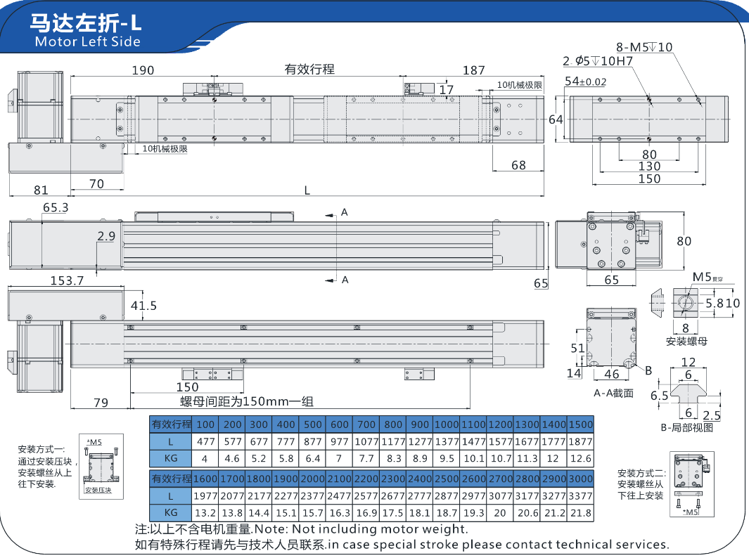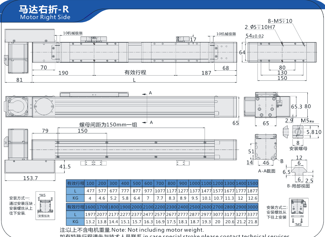 FX直线模型BC6H马达左折-L马达右折-R