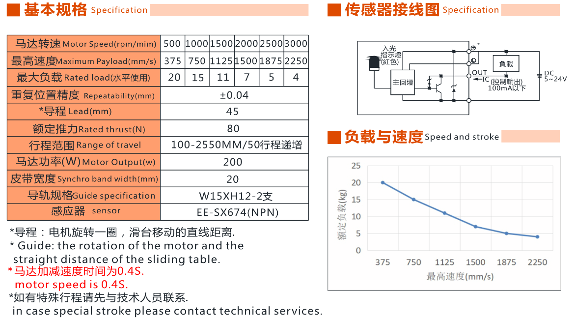 FX直线模组B10H同步带驱动 基本规格,安装示意图,传感器接线图,负载与速度,静态力矩表