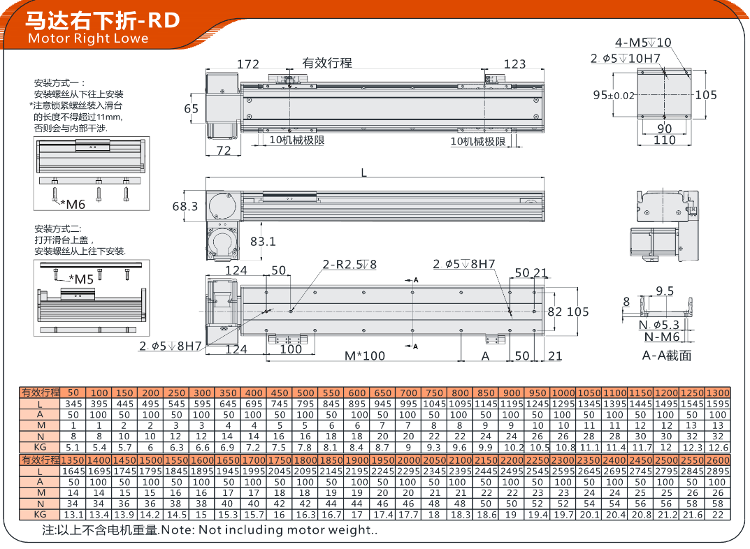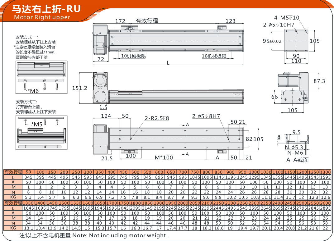 FX直线模组10H同步带驱动 马达右上折-RU 马达右下折-RD