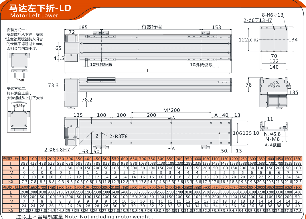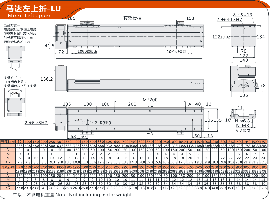 FX直线模组 B13H同步带驱动,马达左上折-LU,马达左下折-LD