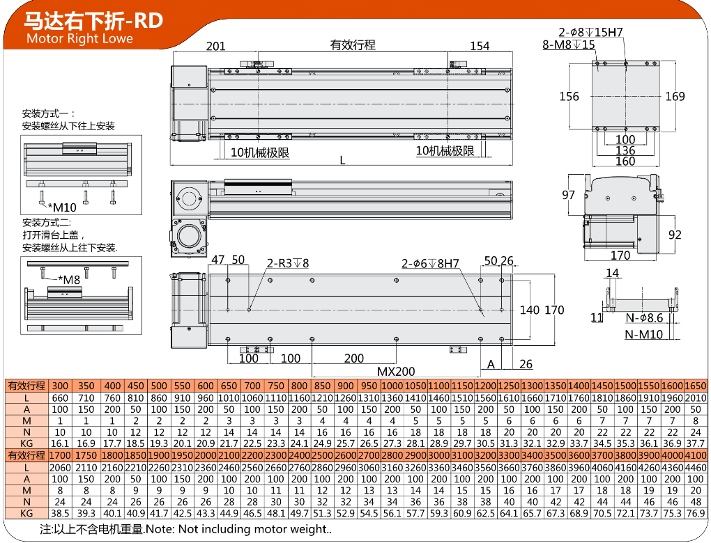 FX直线模组 B17H同步带驱动,马达右上折-RU,马达右下折-RD