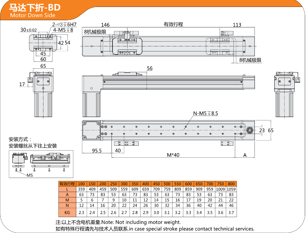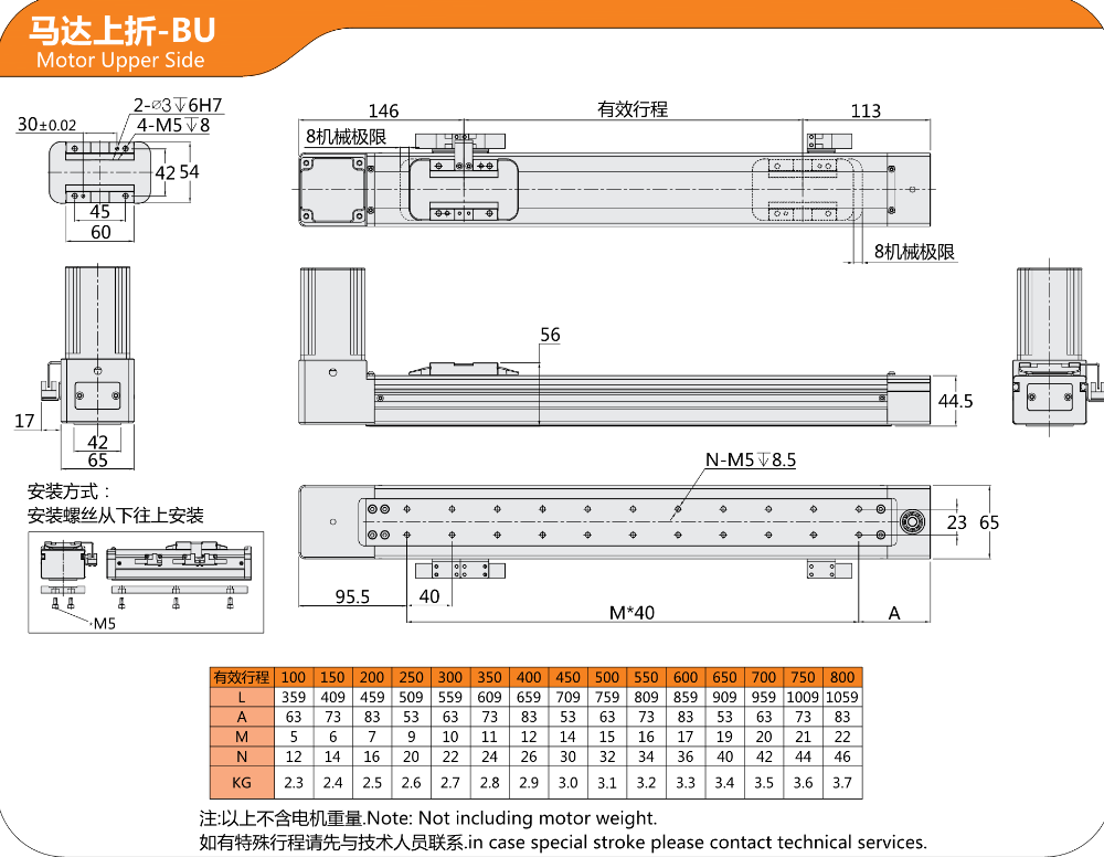 FX直线模组SC同步带驱动,马达上折-BU,马达下折-BD