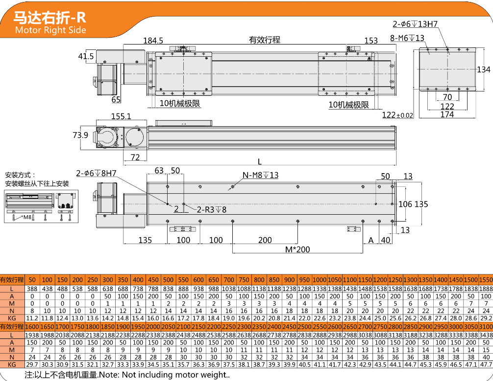 FX直线模组 BC13H同步带驱动,马达左折-L,马达右折-R
