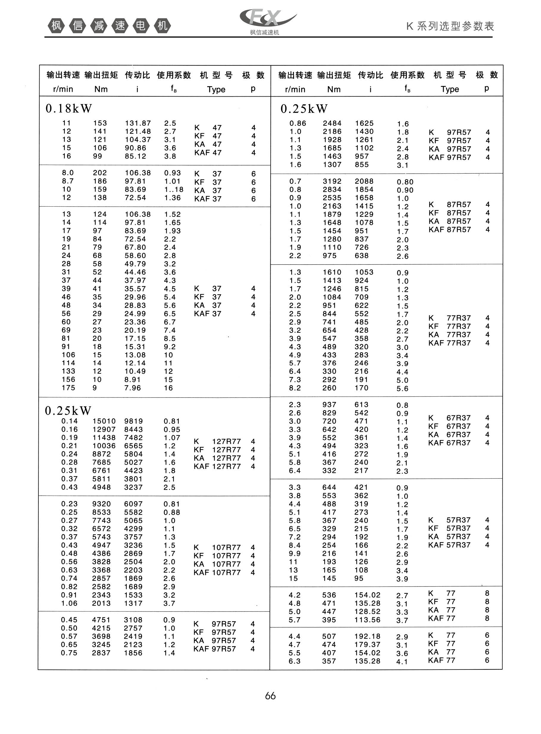 FXK系列螺旋锥齿轮减速机0.18KW.0.25KW。K系列选型参数表