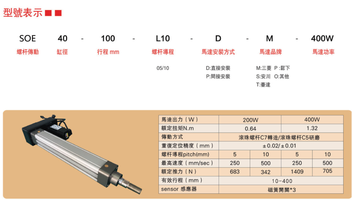 FX直线模组 SOE40型号表示,SOE40基本