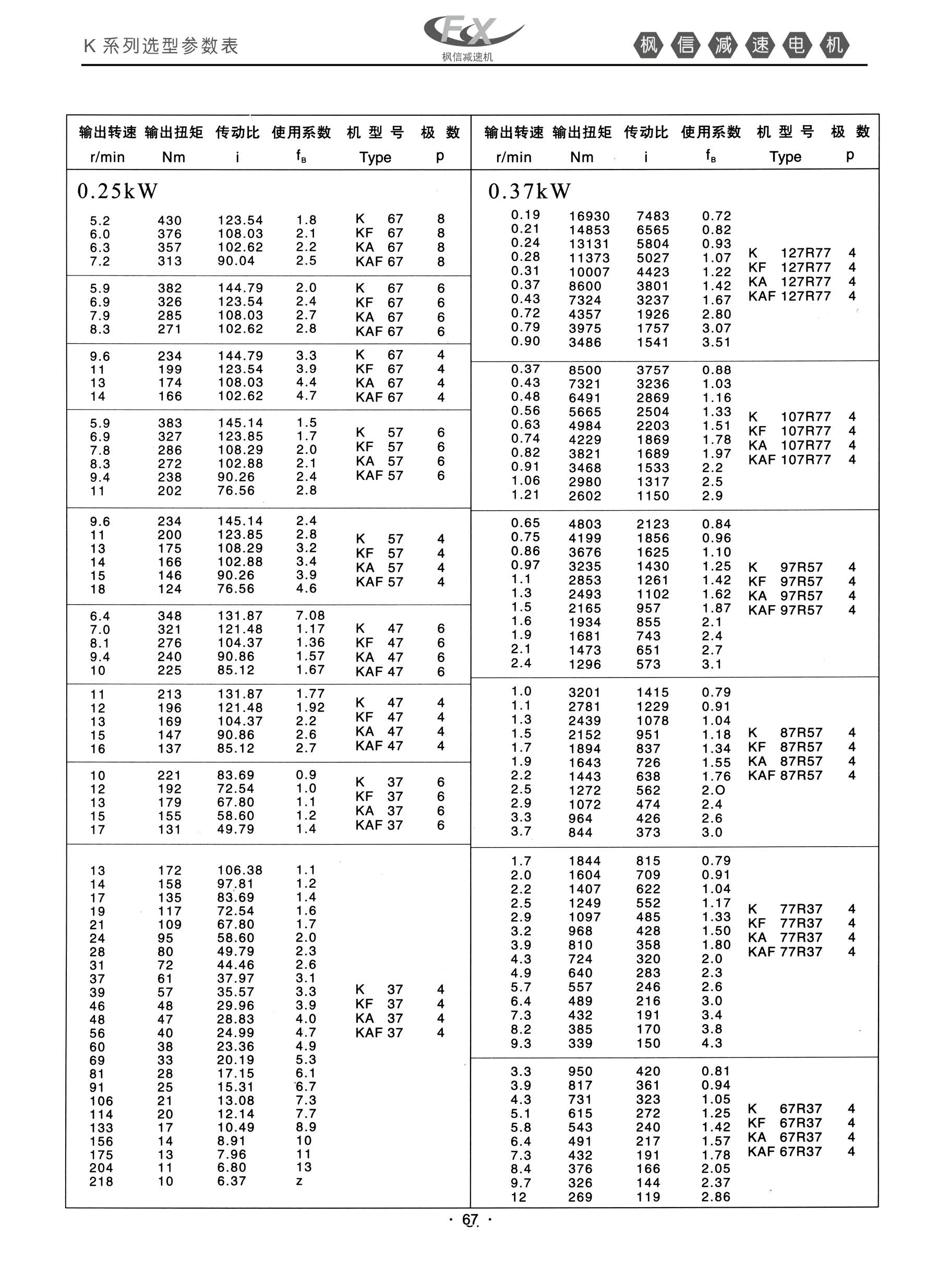 FXK系列螺旋锥齿轮减速机0.25KW.0.37KW,K系列选型参数表