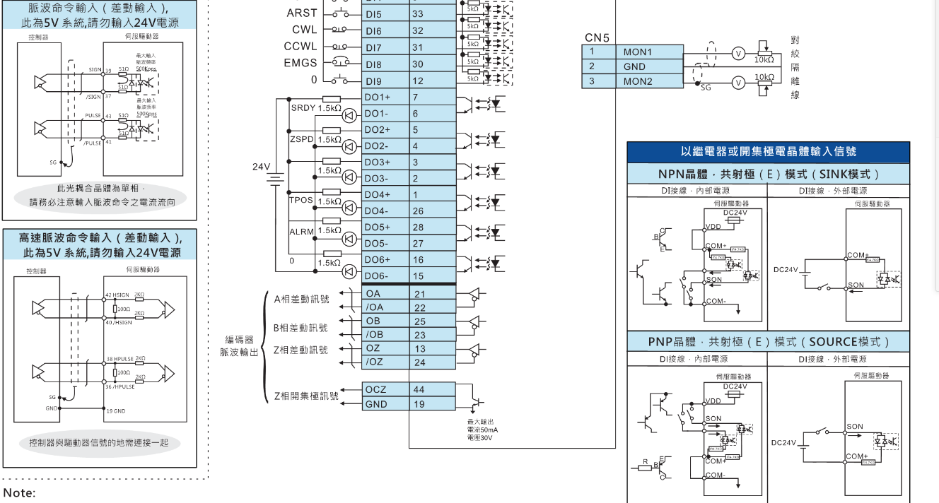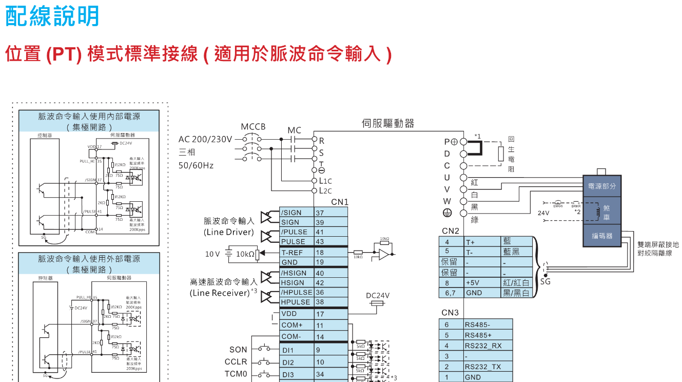 FX台达伺服电机 配线说明 位置【PT】模式样本接线