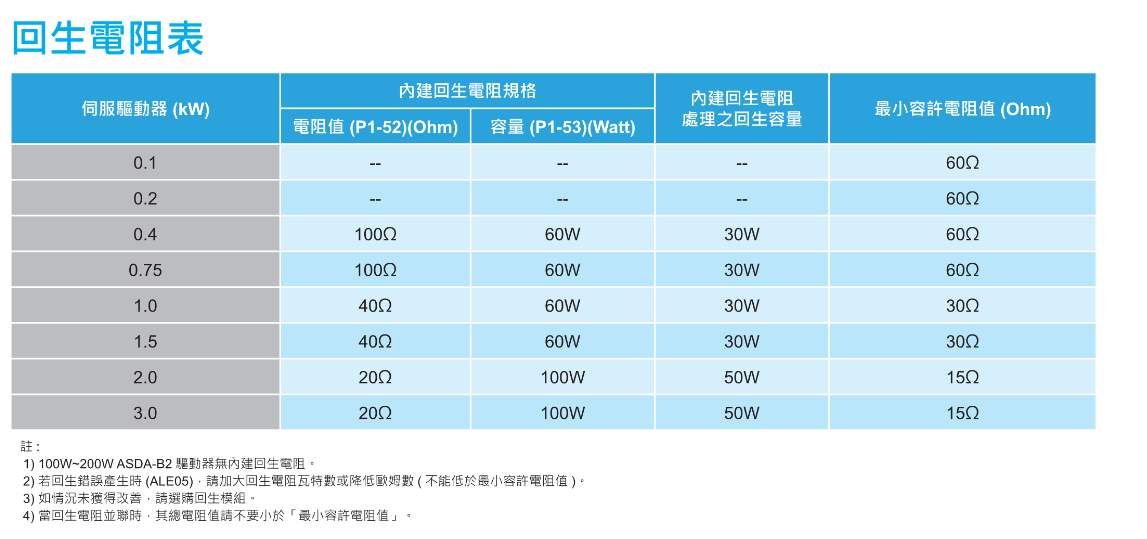 FX台达伺服电机 回生电阻表,驱动器安规解释