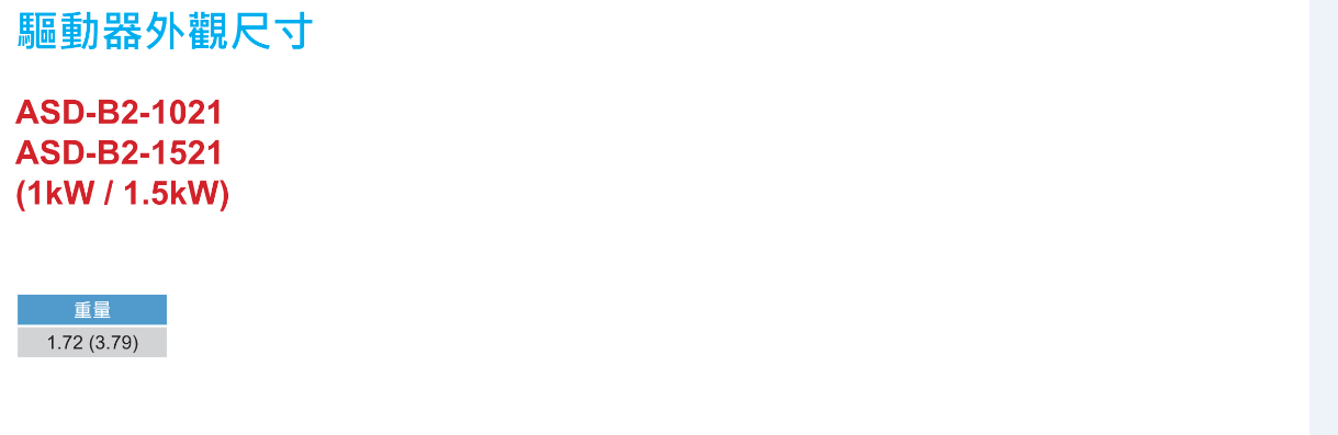 FX台达伺服电机 驱动器外观尺寸 ASD-B2-1021 ASD-B2-1521 【1KW/1.5KW】
