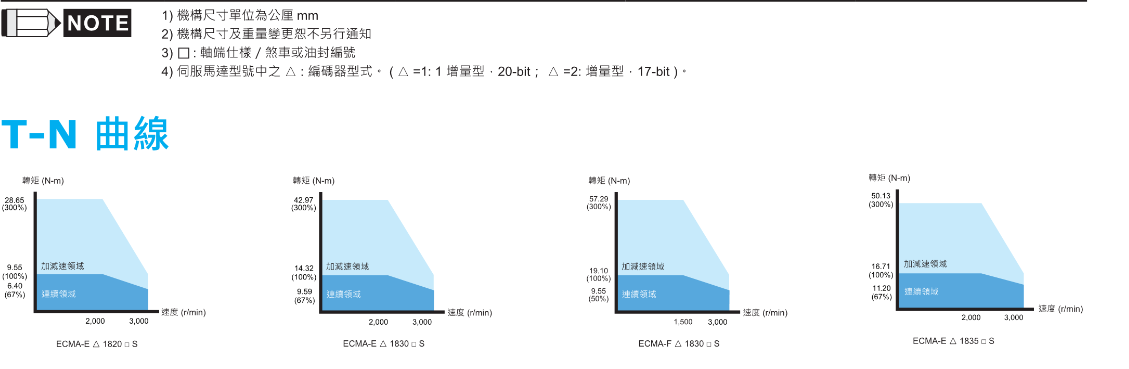 FX台达伺服电机 马达180框号 T-N曲线