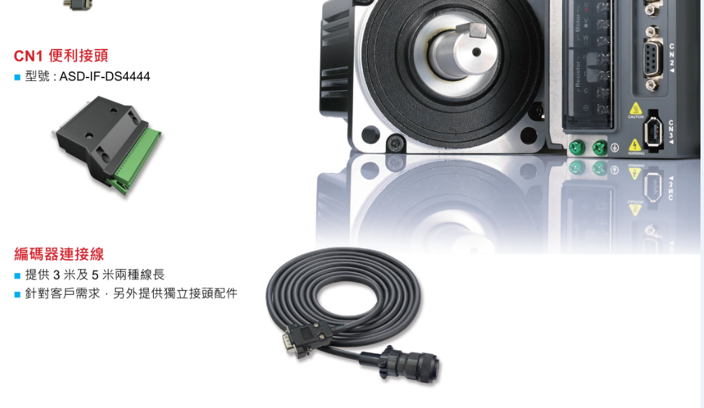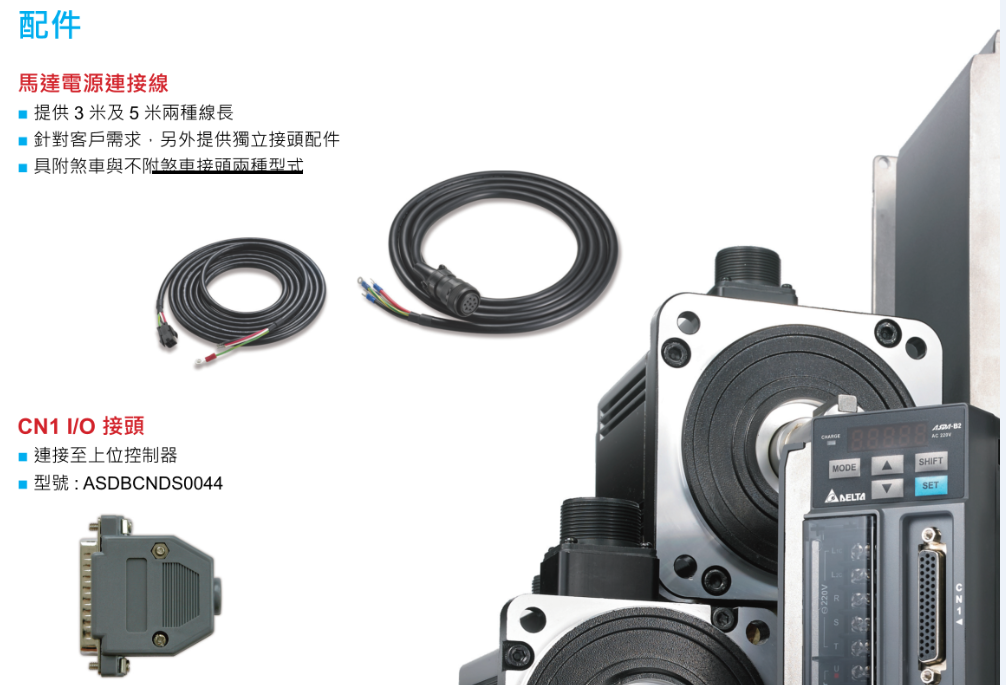 FX台达伺服电机 配件,马达电源连接线,CN1 I/O接头,CN1便利接头,编码器连接源