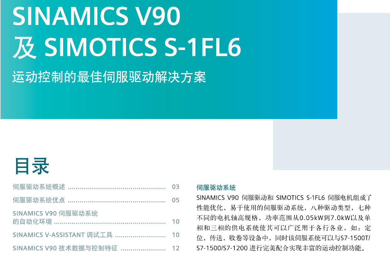 FX西门子伺服电机 SINAMICS V90及SIMOTICS S-1FL6运动控制的最佳伺服驱动解决方案 目录