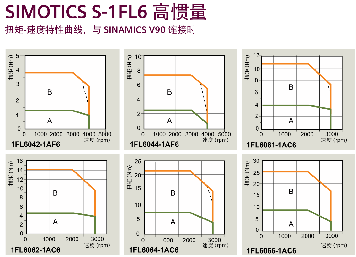 FX西门子伺服电机 SIMOTIS S-1FL6 高惯量,扭矩-速度特性曲线,与SINAMICS V90 连接时