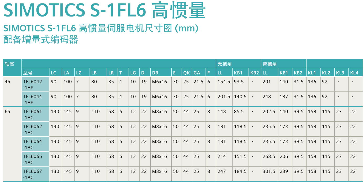 FX西门子伺服电机 SIMOTICS S-1FL6高惯量伺服电机尺寸图,配备增量式编码器