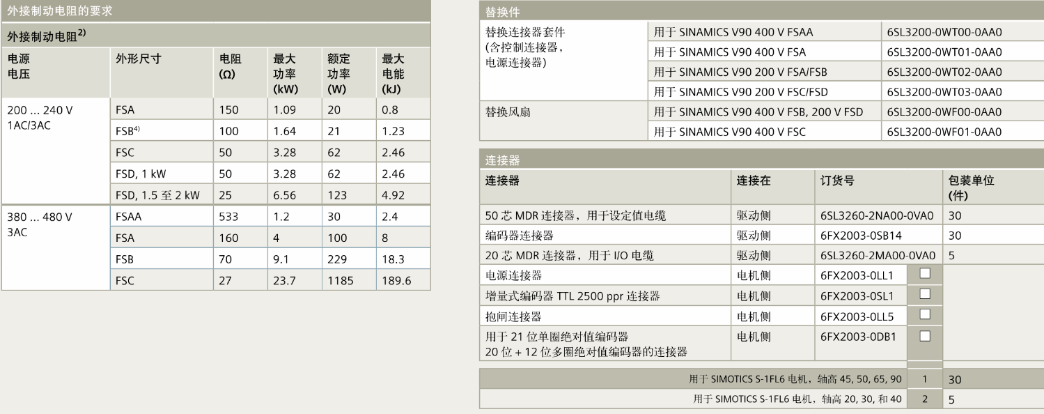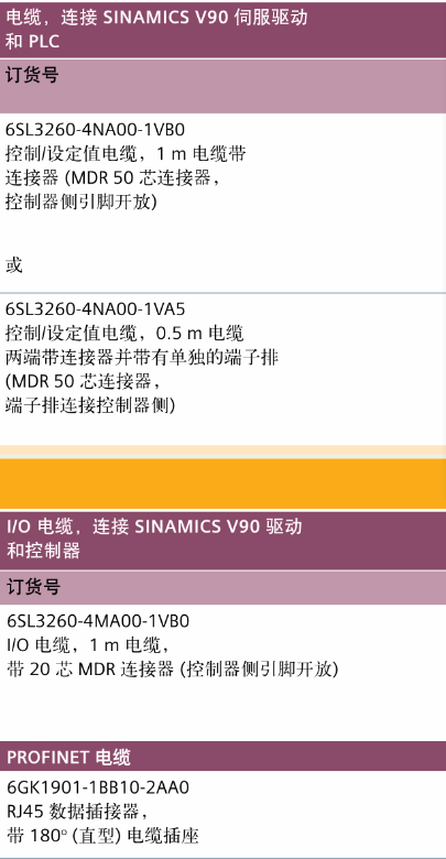FX西门子伺服电机 电缆,连接SINAMICS V90伺服驱动和PLC ,I/O电缆,连接SINAMICS V90驱动和控制器,PROFINET电缆,外接制动电阻的要求,替换件,连接器