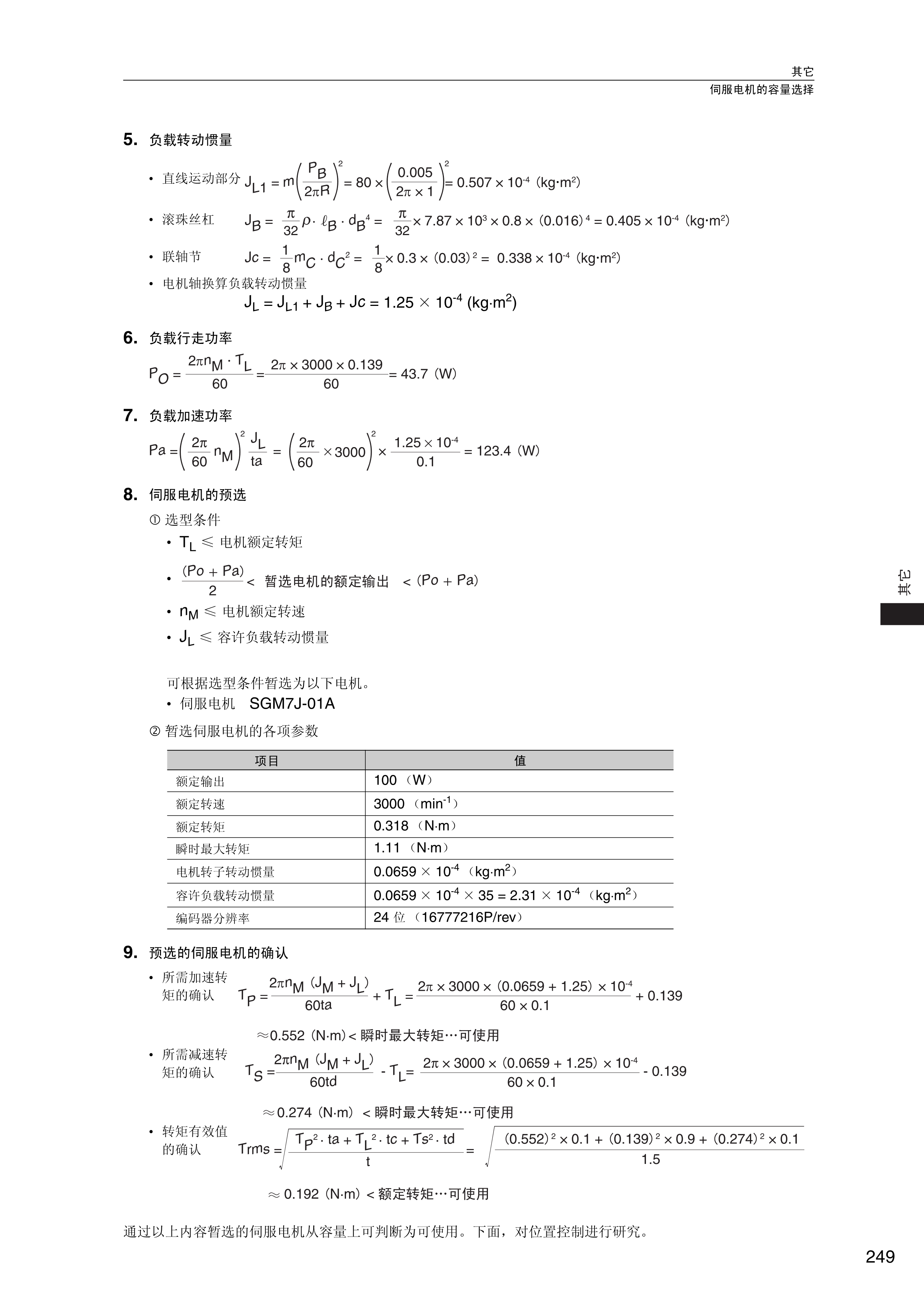 FX安川伺服电机 5,负载转动惯量 6,负载行走功率 7,负载加速功率 8,伺服电机的预选 9,预选的伺服电机的确认