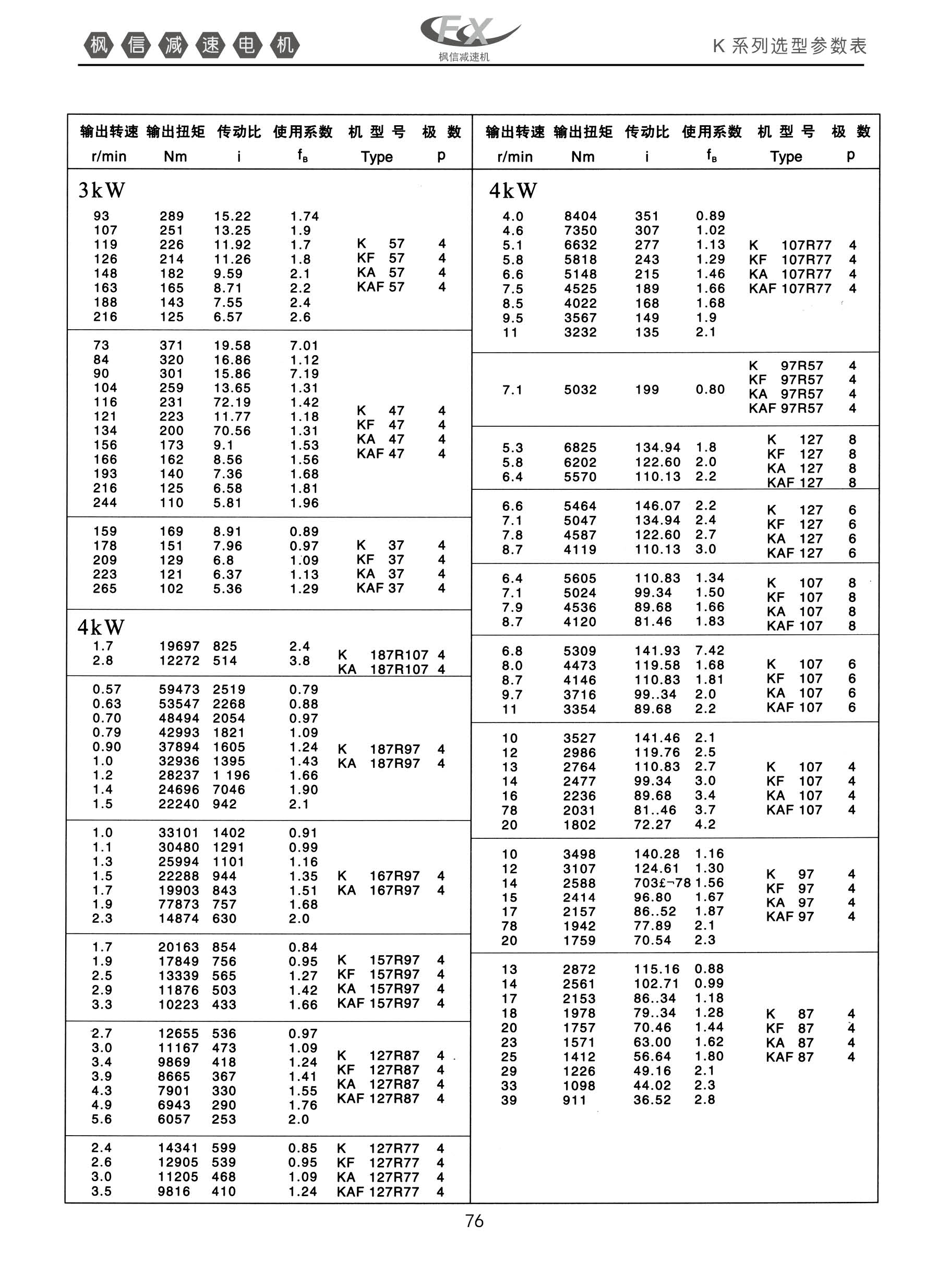 FXK系列螺旋锥齿轮减速机3KW.4KW.K系列选型参数表