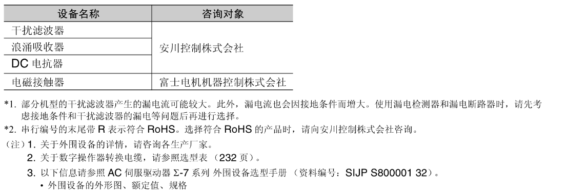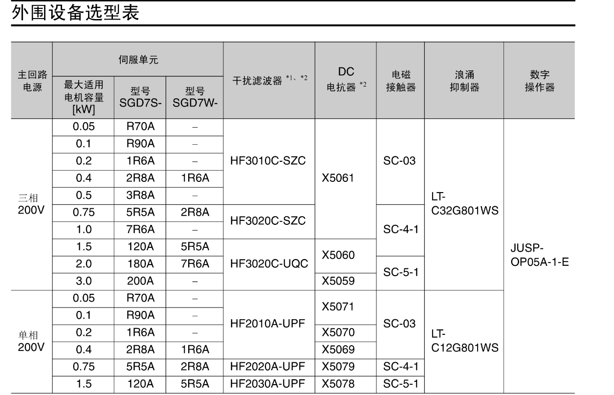 FX安川伺服电机 外围设备选型表