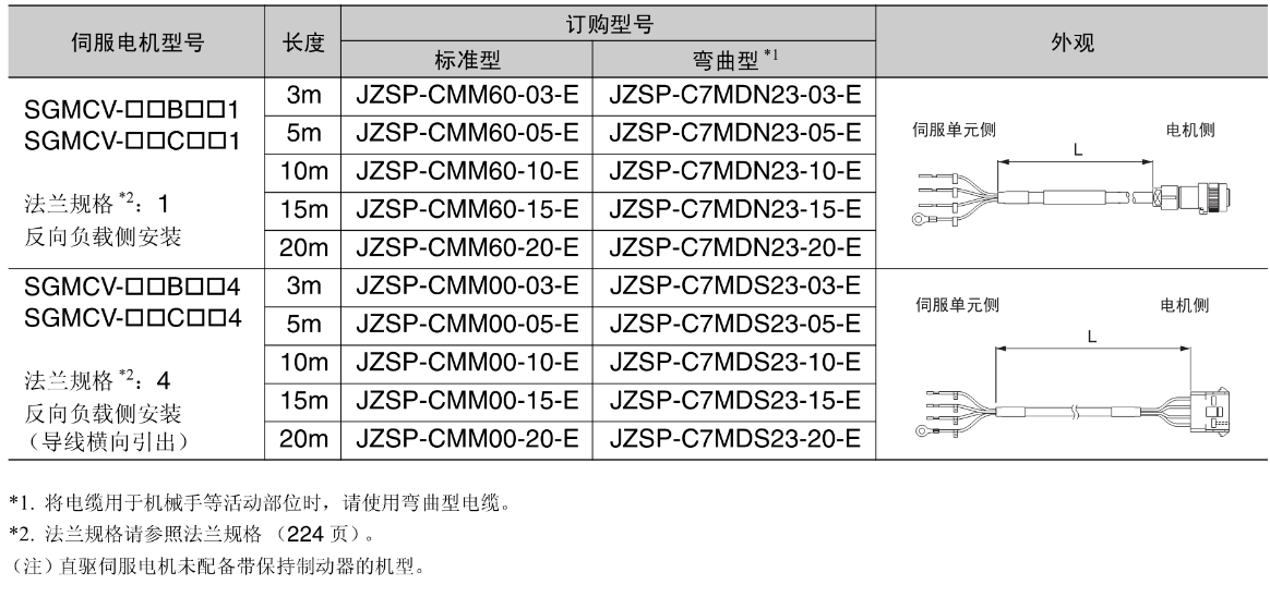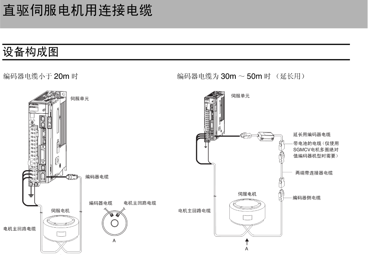 FX安川伺服电机 直驱伺服电机用连接电缆,设备构成图,电机主回电缆