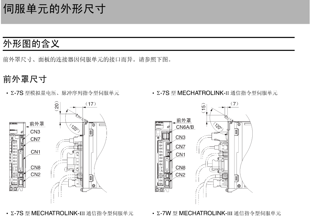 FX安川伺服电机 伺服单元的外形尺寸,外形图的含义,前外罩尺寸