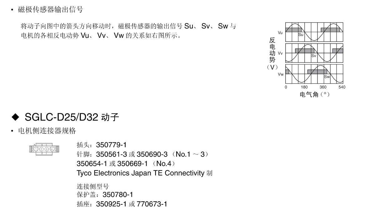 FX安川伺服电机 连接器规格,直线伺服电机,SGLC型【方筒型】,SGLC-D16/D20动子,SGLC-D25/D32动子