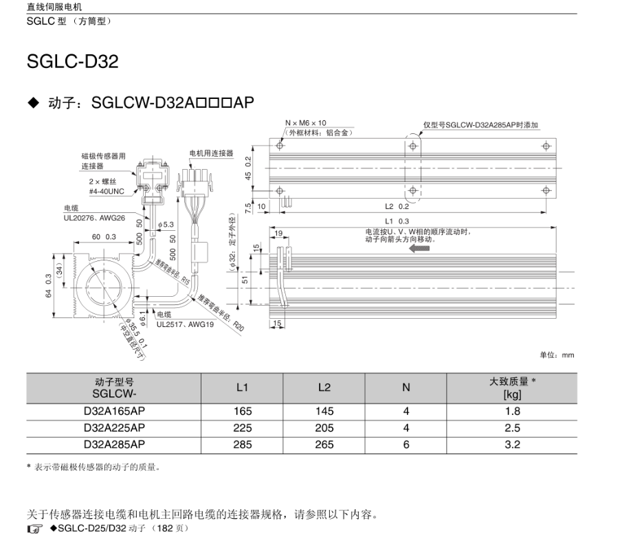 FX伺服电机 SGLC-D32,动子;SGLCW-D32A口口口AP直线伺服电机SGLC型【方筒型】