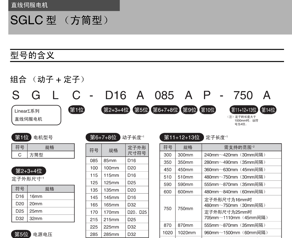 FX直线伺服电机 型号的含义,组合【动子+定子】,直线伺服电机SGLC型【方筒型】